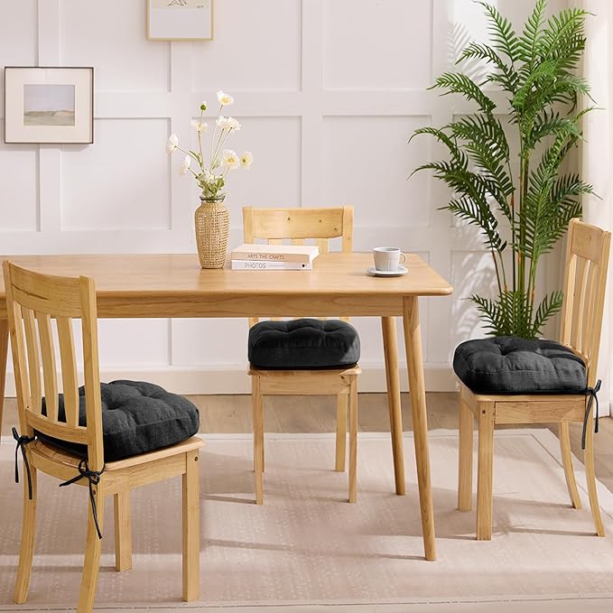 Chair Cushions for Dining Chairs, Dining Chair Cushions, Tufted Indoor Chair Pads with Ties & Non Slip Backing, Seat Cushions for Kitchen Chairs 16.5” x 16.5” x 3.5”, Set of 6, Black