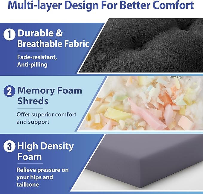 - 【Premium Memory Foam Support】: Designed with high-density memory foam for long-lasting support and comfort, our dining chair cushion offers superior comfort and support, relieving pressure on your hips and tailbone during extended seating