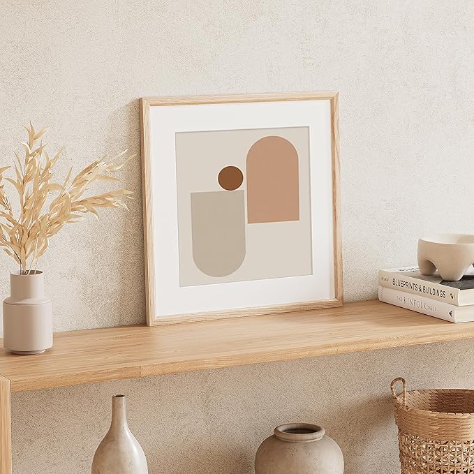 16x16 Picture Frame Natural Solid Oak Photo Frames with 12x12 Removable Mat Wall Hanging Large Handcrafted Frame with HD Plexiglass Wall and Tabletop Display Large Poster Frame