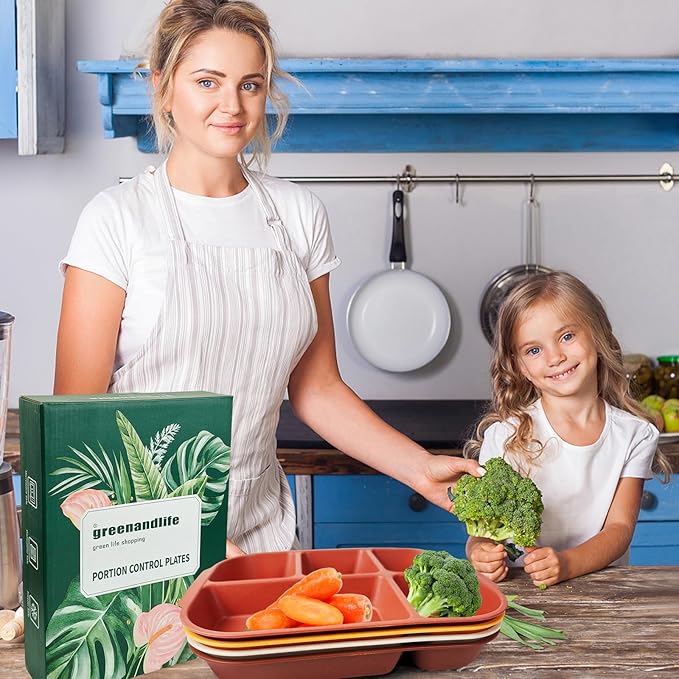 - FOOD SAFE and HEALTHY: Greenandlife divided plate sets are made of wheat straw and food grade PP material, non-toxic and BPA free. Safe and healthy for everyone to use, especially for kids and children. In addition, they are recyclable and no pollution to the environment