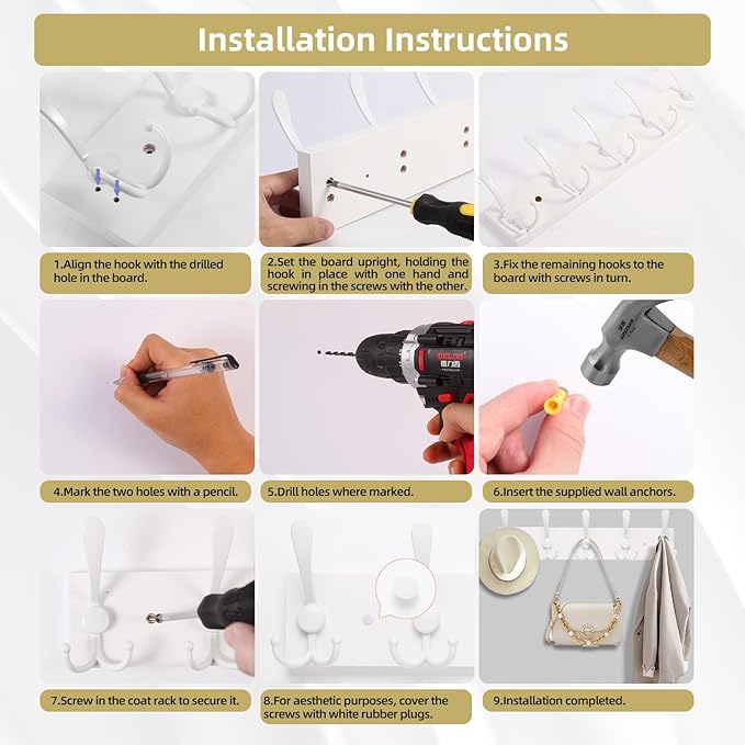 - [Sturdy Coat Rack]: The rack has sturdy metal hooks and a pine solid wood base. Each hooks can hold up to 30 lbs of weight. The white hooks against the white base board looks clean and nice.