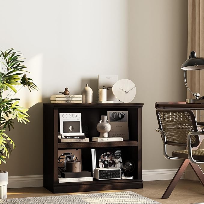 Bookcase, Open Storage Book Cases/Shelves, Floor Standing Indoor Furniture 2 Shelf Book case for Farmhouse Library Office Bedroom Kids, Dark Cherry - 2 Tier