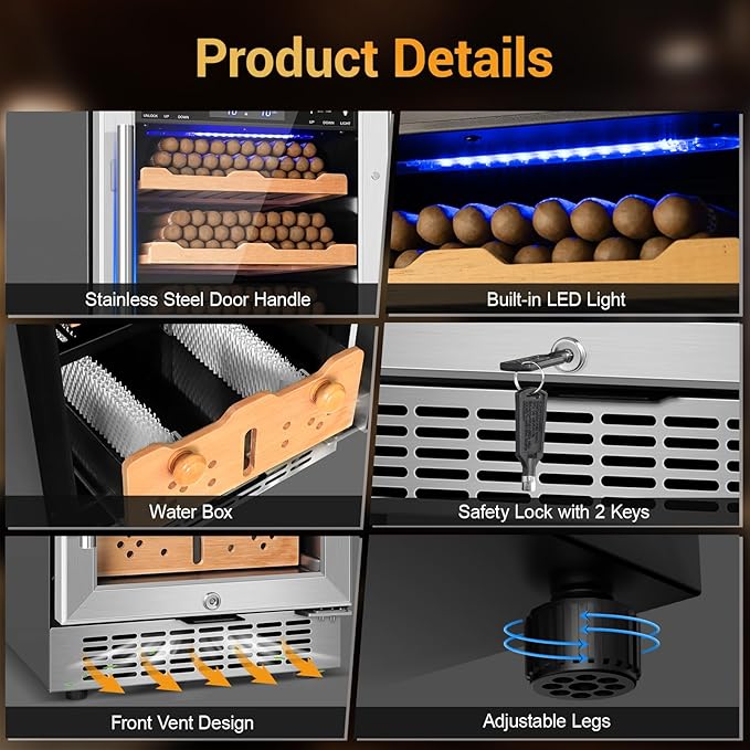 - Elegantly Transparent Display: Easily admire your cigar collection through the clear glass door, adding a touch of class to your storage experience
