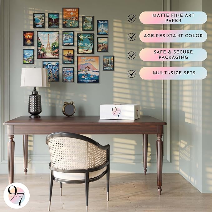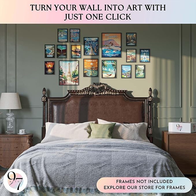 - Travel Poster: Dive into the allure of exploration with our vintage city posters set, featuring 2 Pcs 11x14", 3 Pcs 8x10, 11 Pcs 5x7. This collection brings the world to your walls with its vibrant depiction of travel wall decor and travel wall art.