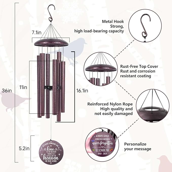 ASTARIN 36" Large Deep Tone Personalized Sympathy Wind Chimes, Memorial Wind Chime for Loss of Mother Father Loved One, Bereavement Gifts Decor Outdoor Patio Garden Graveyard