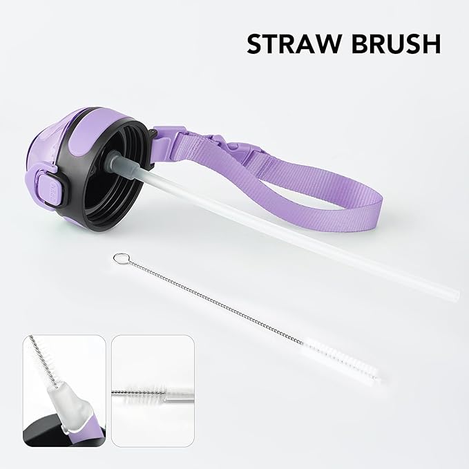 - Humanized Design: The one-hand operation button allows for easy access to water. Highly suitable for boys and girls, and all ages. The flip-top lid of the insulated bottle is used a secure lock, making it dust-free and leak-proof. The included straw brush makes maintaining your bottle's cleanliness uncomplicated and efficient.