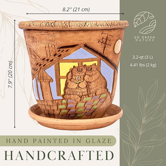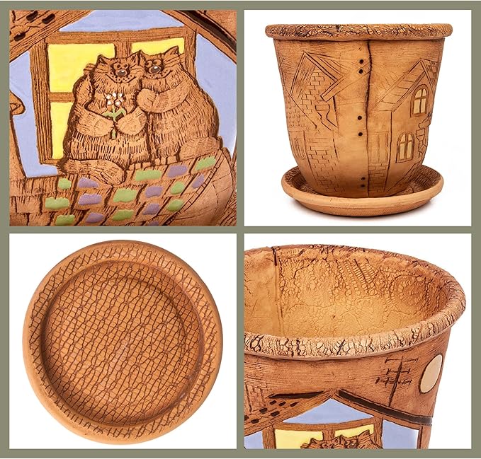- 🌺Material: The flower pot is handmade from high-quality ceramics. Natural clay materials allow air and water movement through the sides of the pot. Air movement stimulates root growth, which results in healthier plants. Clay pots improve soil aeration and protect your plants from staying wet for too long.