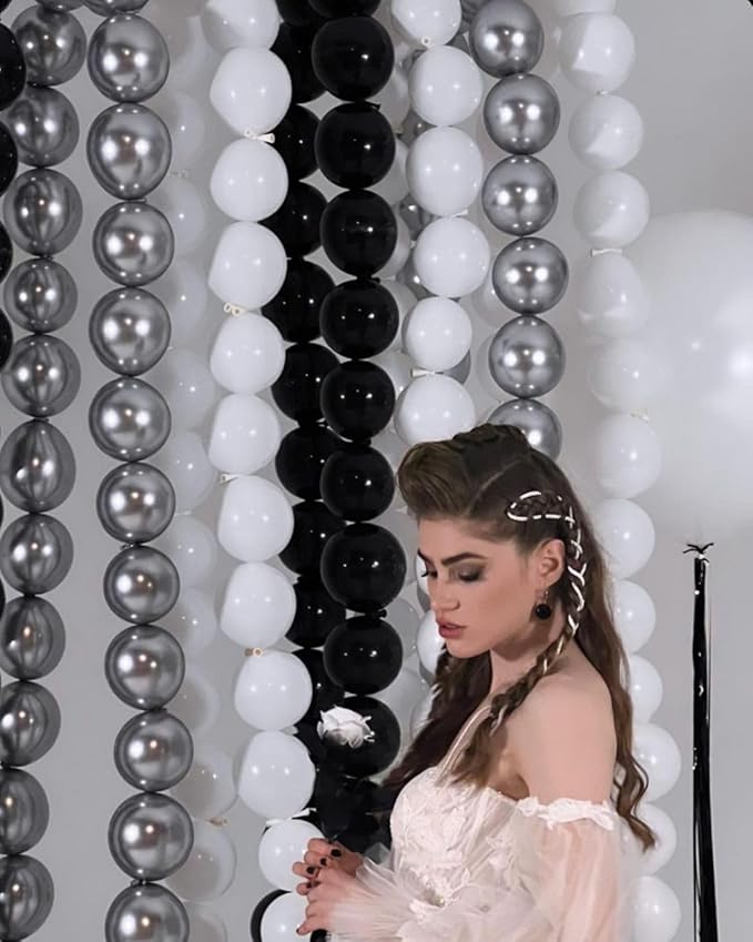 - 💫High Quality Balloons - Our black and white pearl link balloons are made of high quality materials with excellent elasticity and toughness. Linkable balloons are not easy to break or leak, and can stay full for a long time. The chain balloons will not fall off or damage easily during use, providing reliable quality assurance for your decoration needs.