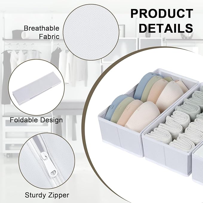 - [Perfectly matching your drawers] : This clothes organizer set includes 18 storage bins in various sizes to fit all your needs: 6 large (11.8*11.8*3.54"), 6 medium (11.8*5.9*3.54"), and 6 small (5.9*5.9*3.54"). Great for organizing clothes, sock, underwear, bra, baby clothing, scarves, shirt, pants, belt, ties, bikini and more