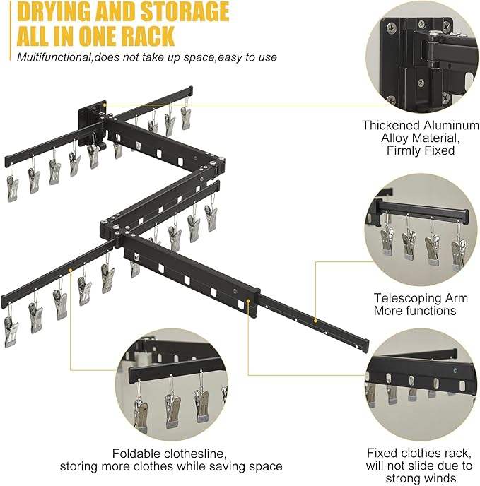 - STURDY AND DURABLE: This drying rack clothes has holes for easy installation; the drying rack is sturdy and durable and can withstand greater weight; the wall-mounted drying rack can hang a large number of clothes at a time.