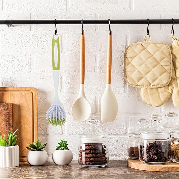 - Protect Your Hands: the dish brush is designed with a long handle and stiff bristles, which can effectively clean stains on pots, pans, sink and other cookware, avoiding skin hurt caused by direct contact between the skin and washing liquid; The handle feels comfortable, lightweight and easy to hold