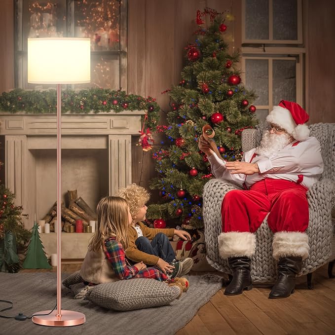 Ambimall 60'' Modern Floor Lamp with Shade, Tall Lamps for Living Room, Bedroom, Office, Dining Room, White Shade with Rose Gold Pole(Without Bulb)