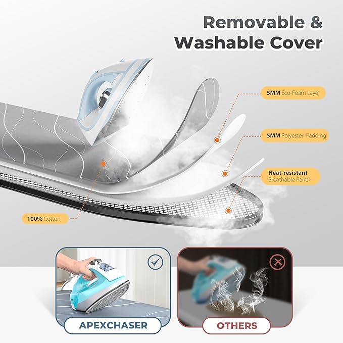 - 3-Layer Removable Cover: Features 5mm polyester padding, eco-foam, and premium cotton for a heat-resistant, scorch-proof surface; easy to wash