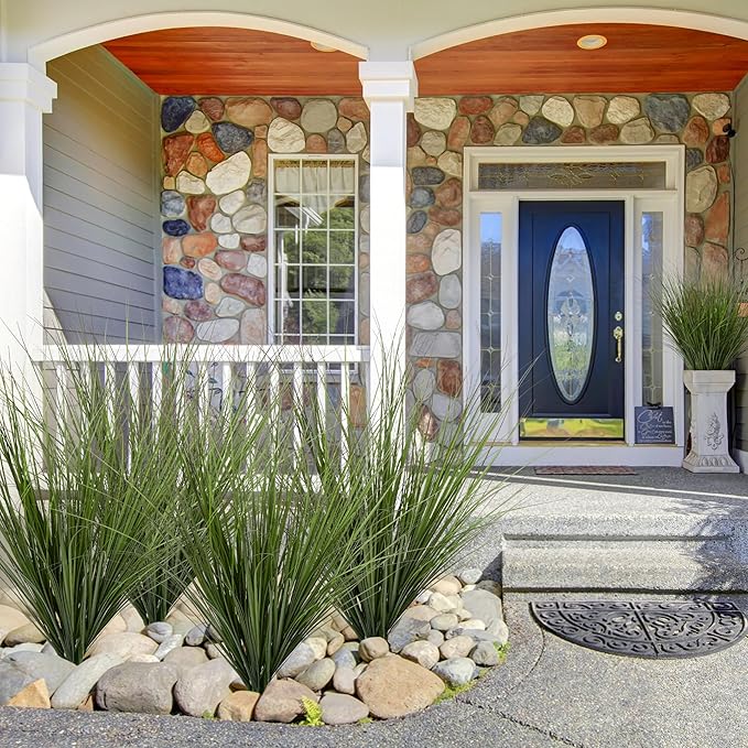 - VERSATILE DECORATION USES: The artificial wheat grass offers endless possibilities for decoration. It can be paired with other artificial plants to create a diverse greenery arrangement indoor, adding a pop of freshness to any room. For Outdoor use, it can be used to line walkways, fill flower beds, or enhance the edges of a garden. It's also a great choice for artificial grass plant projects, such as creating a miniature landscape. Its versatility makes it suitable for various home decoration.
