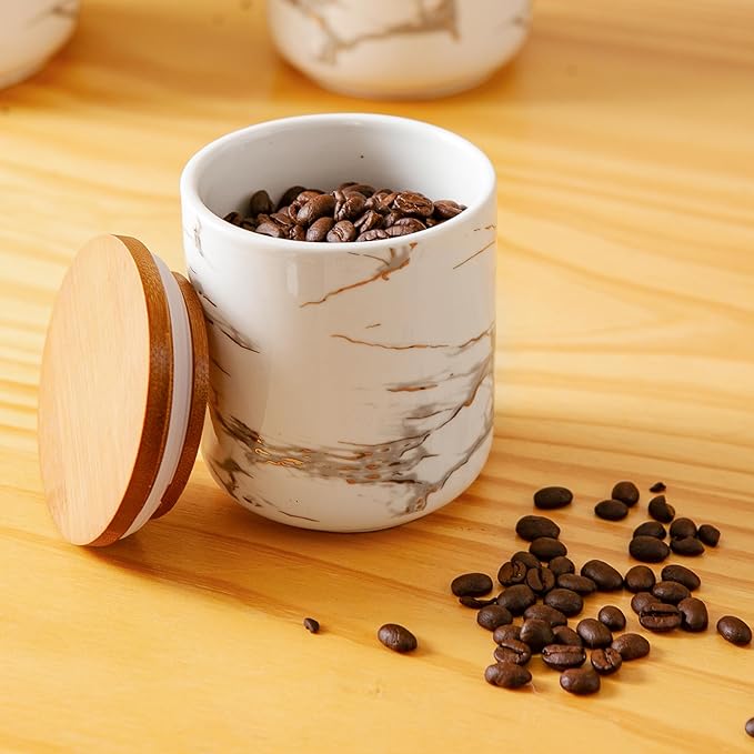 - Durable & Easy Maintenance | These durable ceramic canisters are resistant to stains and odors. The smooth glaze finish ensures easy cleaning. (Wooden lids should be hand-washed and dried properly.)