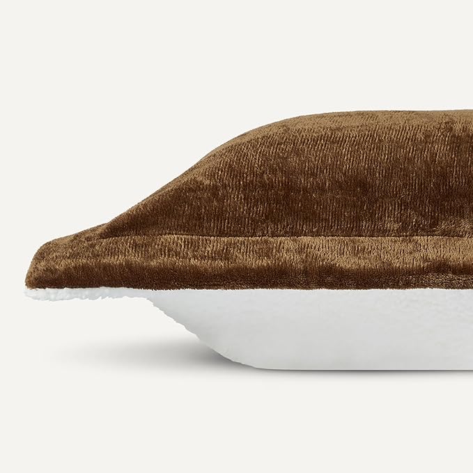 - Reversible with soft micromink polyester in Brown on one side and white faux sherpa fleece on the reverse