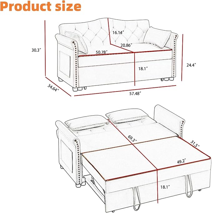 - 【Comfortable Fabric】This sleeper sofa is made of high-quality velvet fabric, woven thick and durable, with a soft touch. Its texture is lightweight, not only comfortable, but also easy to clean. Whether enhancing home decor or daily use, it can add a touch of elegance to any space
