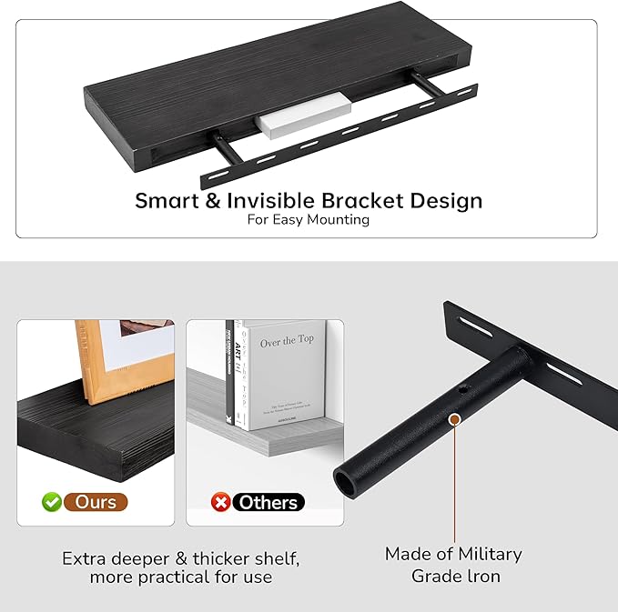 - Space-Saving Solution: Maximize storage without occupying floor space. Our floating wall shelves reduce clutter and enhance wall decor, perfect for compact spaces and any interior style.