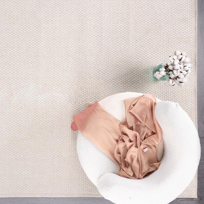 CAMILSON Easy Jute Rug 8x10, Indoor Outdoor Off-White Farmhouse Area Rugs for Living Room Patio and Kitchen Rug, Solid Woven Design, Easy-Cleaning, Non Slip Washable Outside Carpet Alfombras (8 x 10)