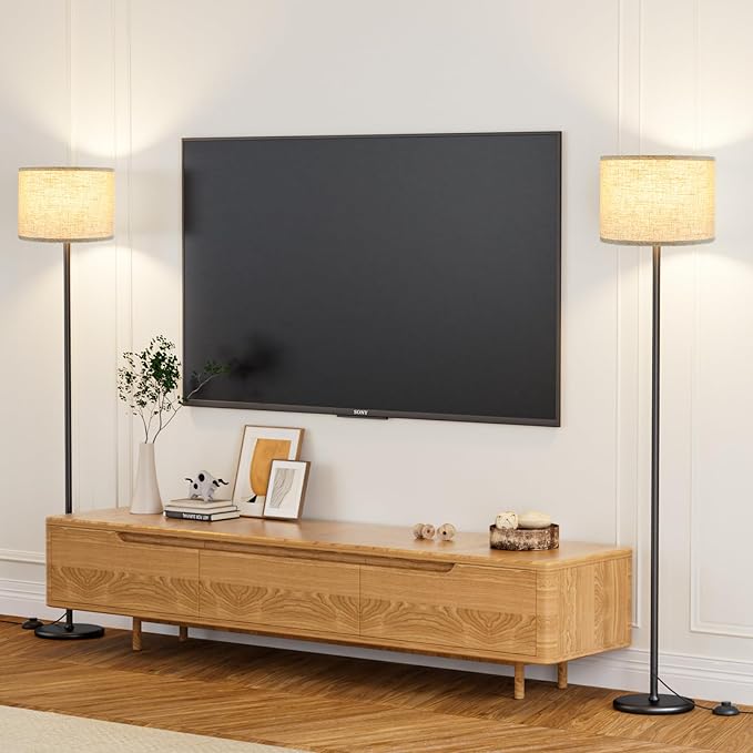 - Modern Floor Lamp Set of 2: 2 PCS 60'' standing lamp adopts a simple design, accompanied by an elegant fabric lampshade. Its simple and modern design makes it a perfect fit for any area in your home or office.