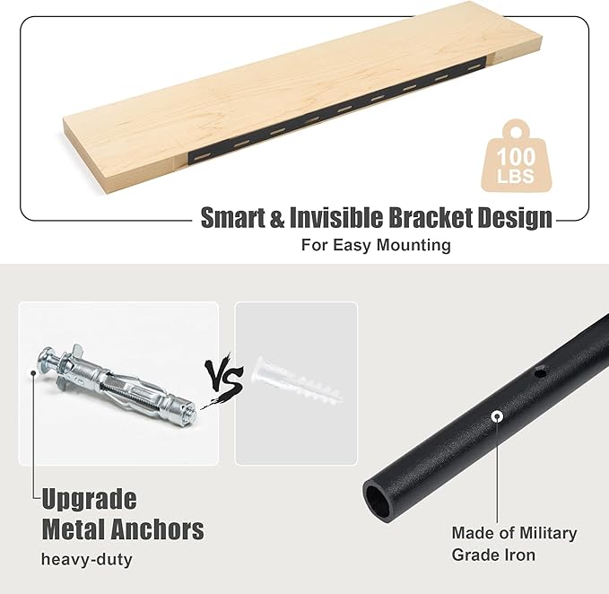 - Sturdy & Functional: Equipped with heavy-duty metal brackets, each shelf supports up to 100 lbs. The flat surface and stable construction make them suitable for any room while showcasing the natural beauty of the wood grain.