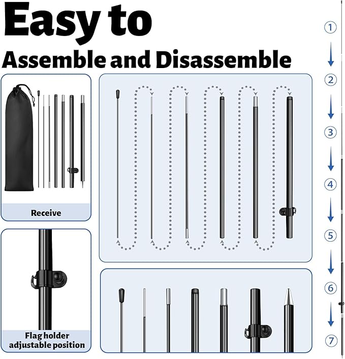 - Easily assemble and disassemble: Just assemble the flagpole, insert the open flag then place them into the ground stake. Then insert the H-shaped stake into the real estate signs and finished. Easily disassemble and store, and it can be used as many times as you want