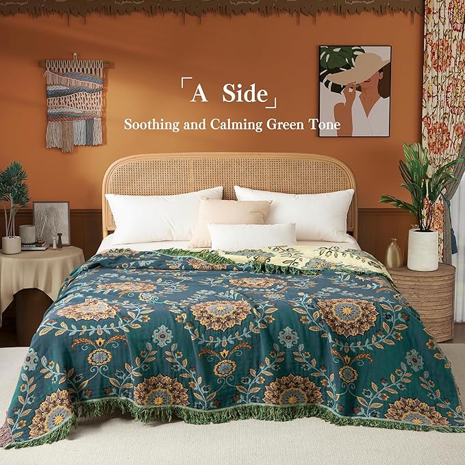 - Endless Uses: This large, multi-use blanket is perfect for any setting. Use it as a cozy bedspread, bed runner, or coverlet on your queen, full, or twin bed, or as a stylish tapestry on your sofa, chair, or in your bedroom. Take it outdoors for picnics, camping, or beach days — it’s big enough to cover you on the grass or sand. Whether at home or on the go, this blanket adds comfort and charm wherever you need it, offering both beauty and practicality in every setting.