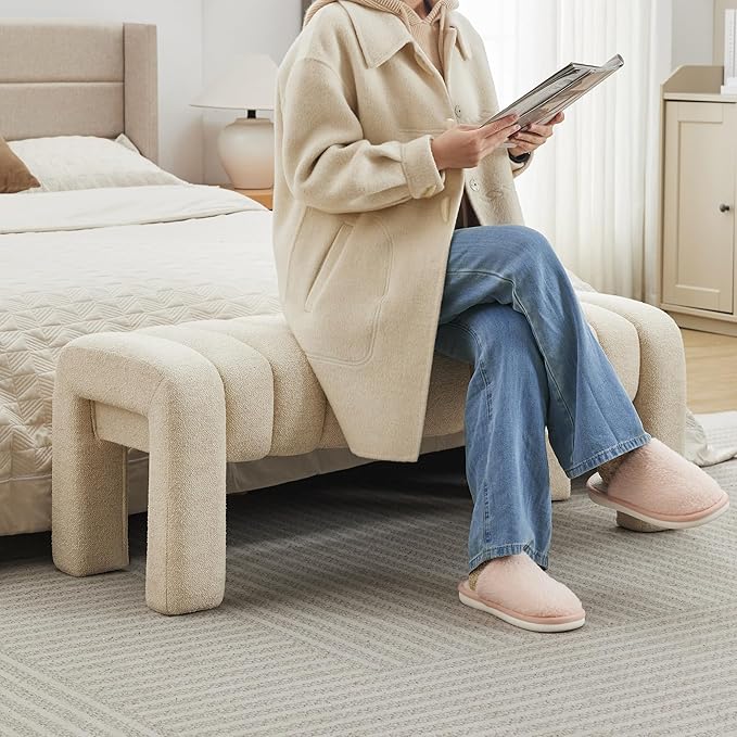 - 【Comfortable Experience】 This bedroom bench is made of delicate fabric and filled with high-density foam, providing excellent sitting feeling and comfort, allowing you to sit down or rest your feet after a busy day. Equipped with four adjustable foot pegs to ensure that the bench is stable and not wobbly during use, protect your floor from scratches and bring you a safer experience