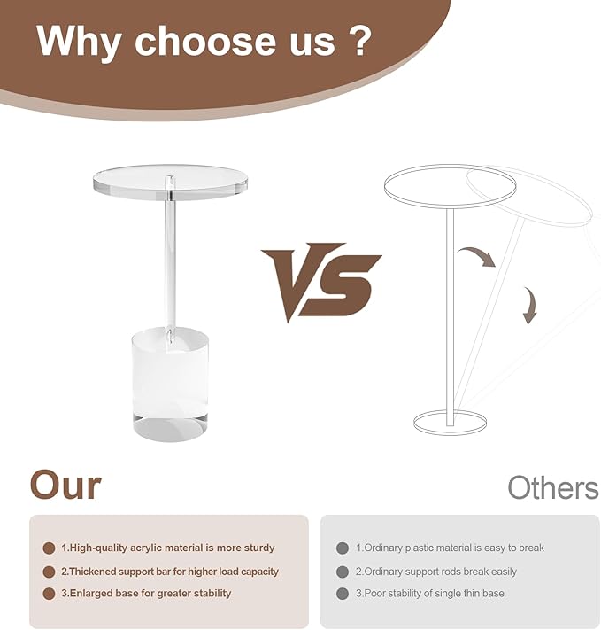 - 【High Quality】Crafted from premium acrylic, this acrylic side table resists scratches, drops, and discoloration. Its high transparency, glossy finish, and easy-clean surface ensure lasting clarity and durability.