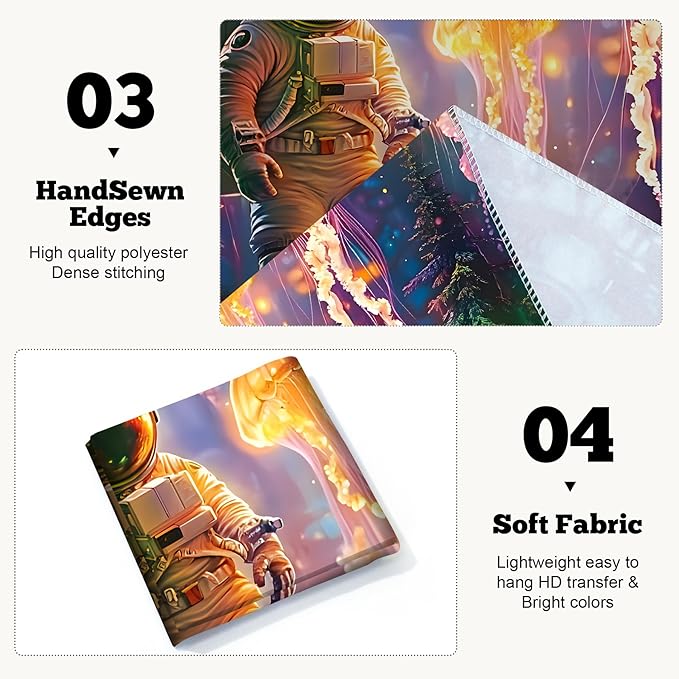 - Versatile Tapestry - With its durable materials and unique design, this blacklight tapestry can serve as a wall hanging tapestry, indie room tapestry, curtain tapestry, dorm room tapestry, ceiling tapestry, bedroom tapestry, glow-in-the-dark artwork or even a picnic blanket.