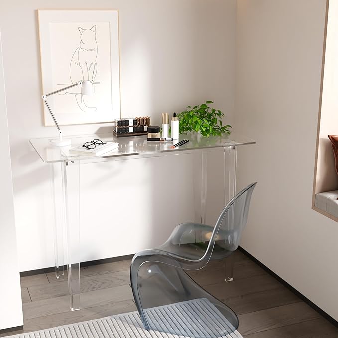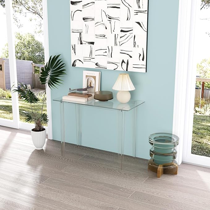Acrylic Desk, Modern Study Table for HomeOffice-Extended Surface Multi-Purpose Console & EntrywayTable, Sturdy Lightweight Design (42.5-inch, Transparent)
