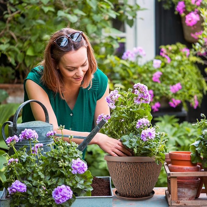 - 【Garden/Home Plant Decor】 Dark brown plant pots with colorful plants or flowers can be a great decoration for living room, french window, balcony, courtyard, etc. Planters for indoor plants can hold more soil, and avoid frequent repotting that damages the root syste. In addition, Nooulap planters are available in 8/10/12/16 inches.