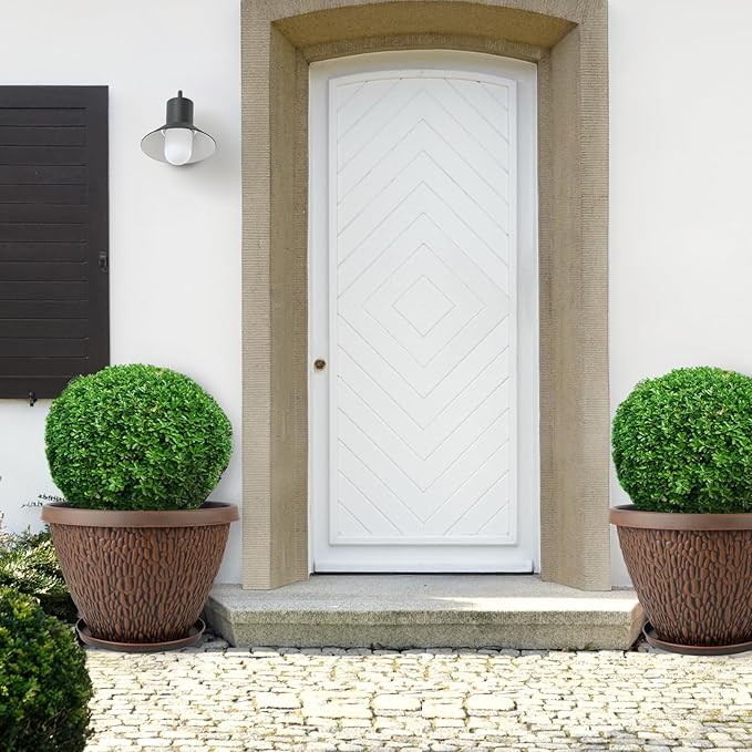 - 【More Drainage and 4 Tray】These plastic plant pots with drainage holes in the bottom to let exceed water easily flow out to help prolong the life of your plants, and 4 saucers are provided to hold just the right amount of water. Large flowerpot has wide base and deep capacity, with strong stability to prevent tipping, worry-free outdoor use.