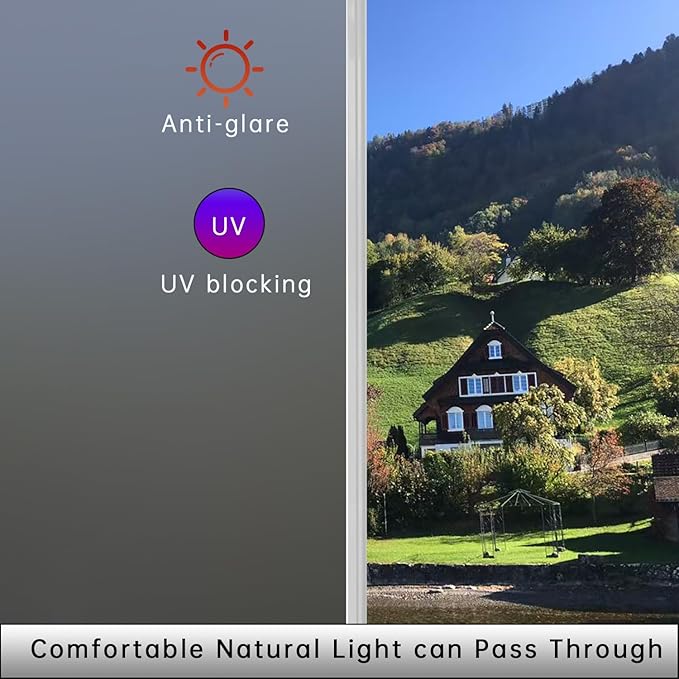 - [Window film privacy day and night]; Frosted window privacy film is used for glass windows, which can block prying eyes and dog barking, can effectively block unwanted sight from the outside, ensure that your private space is well protected, while still allowing soft natural light to enter, vinyl window film simple decoration makes life easier and better, glass doors, bathrooms, bathroom windows, home, kitchen, french doors, front door side windows, living room, meeting room, office, living room, house, patio door, bedroom, etc., window privacy screen, sliding door, Create a more comfortable living space for you and your family.