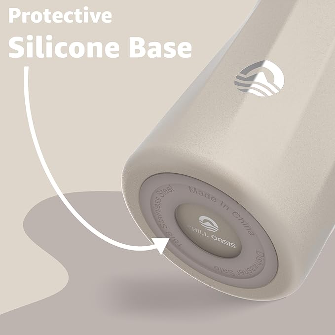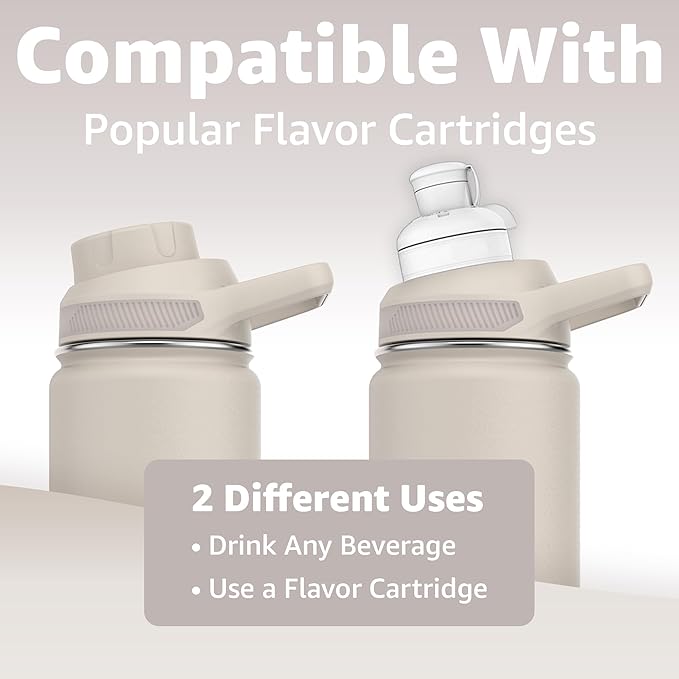 Chill Oasis Water Bottle | Compatible With Popular Flavor Cartridges | BPA Free, Leak Proof, Double-Walled Vacuum Insulated Stainless Steel, and Dishwasher Safe | Cold for 24 Hours (Beige, 32oz)