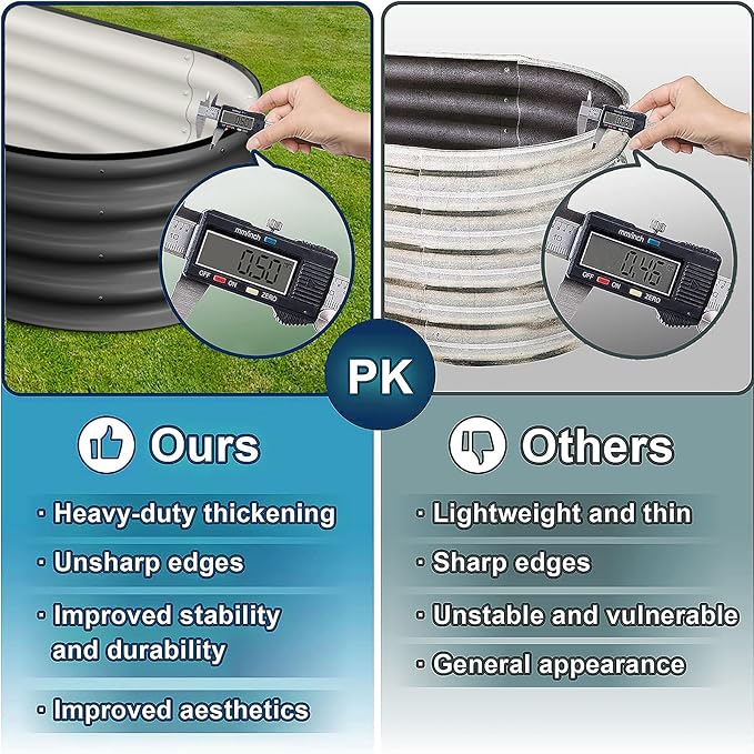 - š³ Unmatched Stability: Crafted with 0.5mm thick overlapping galvanized panels, reaching up to 1.8mm at the seams, our raised garden bed provides excellent strength and stability. The integrated screw fastening edge and unique oval form ensure it remains solid and secure, even when fully planted.