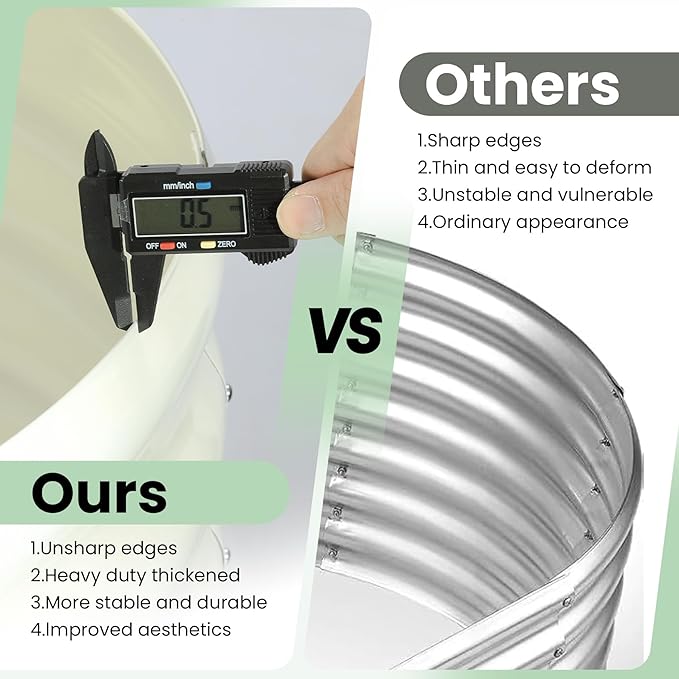 - š³ Unmatched Stability: Crafted with 0.5mm thick overlapping galvanized panels, reaching up to 1.8mm at the seams, our raised garden bed provides excellent strength and stability. The integrated screw fastening edge and unique oval form ensure it remains solid and secure, even when fully planted.