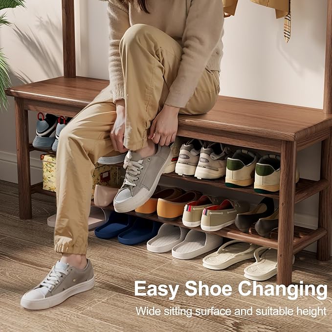 - [3-in-1 Coat Rack] Our hall tree combines three functions in one: hooks for coats and bags, a shoe bench for changing shoes, and a shoe rack to organize your footwear—this freestanding coat rack brings you a tidy, convenient, and cozy entryway at home
