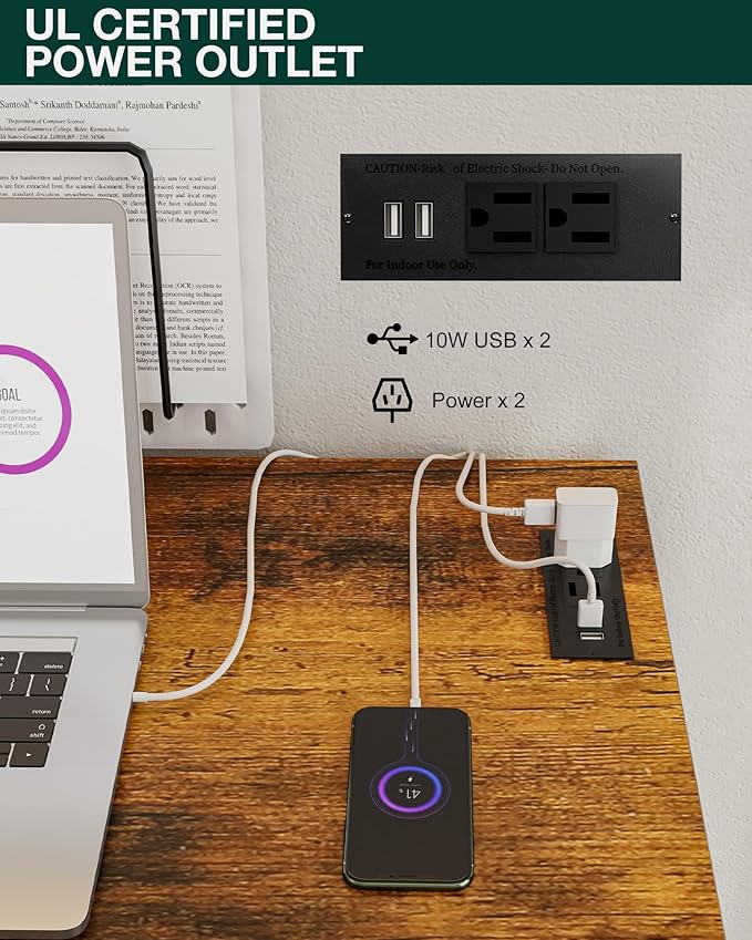 - πππ‘π§πππ₯ππ§ππ π£π’πͺππ₯ ππ¨π β ππππ₯ππ ππ©ππ₯π¬π§πππ‘π ππ§ π’π‘ππ β Stay powered and productive with 2 built-in AC outlets and 2 USB portsβperfect for laptops, phones, tablets, and more. No more messy extension cords or reaching for distant plugs; this smart design keeps all your devices charged and your workspace neat