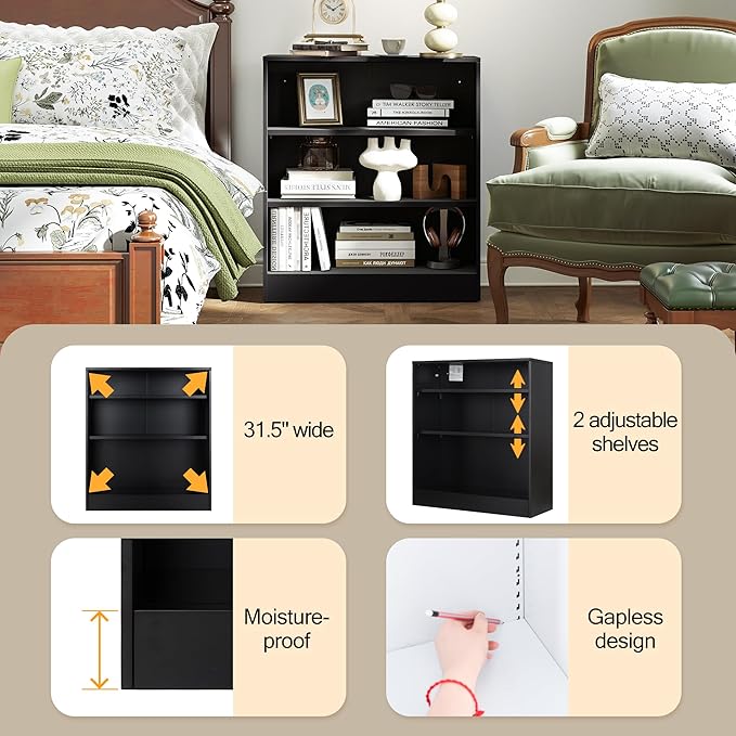 - Small Bookshelf for Small Spaces: 3 tier bookshelf optimizes floor space, making it an excellent choice for bedrooms, home offices, corners, hallways, or smaller living rooms. It can meet your storage needs, you can put your books, photos, collectibles and souvenirs on the industrial shelves. Book shelf dimensions: 13"D x 31.5"W x 35.5"H. Metal Storage Cabinet made of 0.8mm thick cold-rolled steel, this metal cabinet is 20% stronger than common steel. Each shelf of open book shelf can bear a weight of 100 LBS