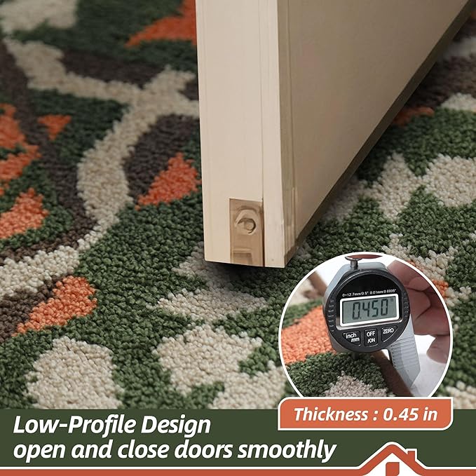- Stylish and Low Profile Design: Boho geometric floral patterns are suitable for most kinds of home dΓ©cor. Our doormats measure 32" x 48" x 0.45", low-profile design and reinforced overlock edges to ensure that doors won't get stuck or the door rug go curling. Note: Please confirm the height of the door gap before purchasing
