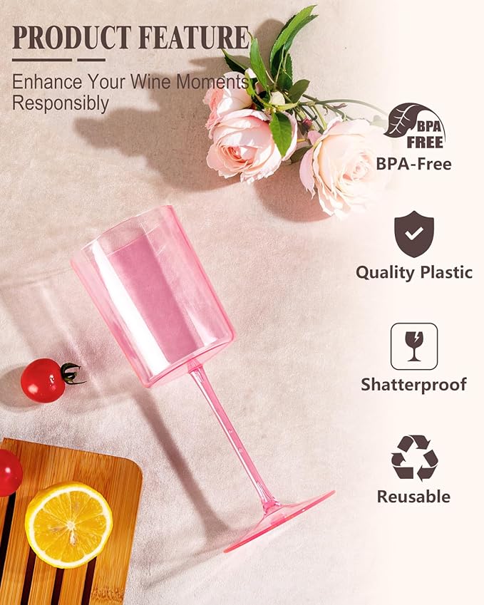 - Sleek and Stylish Design: This disposable wine glasses exudes elegance and sophistication. The subtle yet eye-catching accent adds a touch of luxury to your drinking experience, making clear plastic wine glasses perfect for both casual and formal occasions. This pink plastic wine glasses disposable sleek design ensures that you'll make a stylish statement.