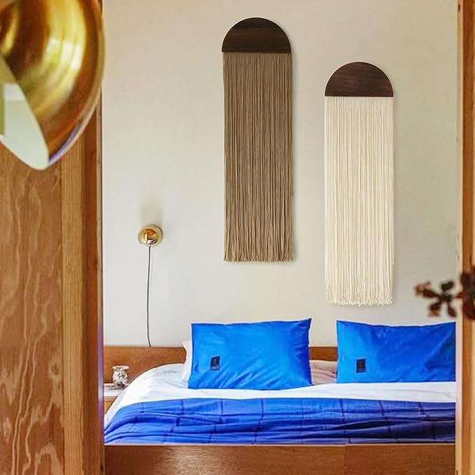 - Boho-Inspired Elegance: Macrame wall hanging tassel wood board wall decor blends natural wood with soft cotton tassels, creating a cozy and stylish ambiance in any space. Its layered design adds depth and warmth, perfect for modern and bohemian interiors.