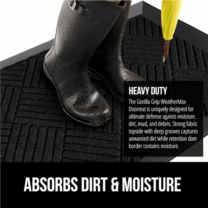 - THE ORIGINAL WEATHERMAX ALL SEASON DOORMAT: Gorilla Grip's Original WeatherMax doormat is built tough with a heavy duty, yet soft and flexible construction; deep grooves, beveled rubber border and retention dam help capture dirt, debris and moisture