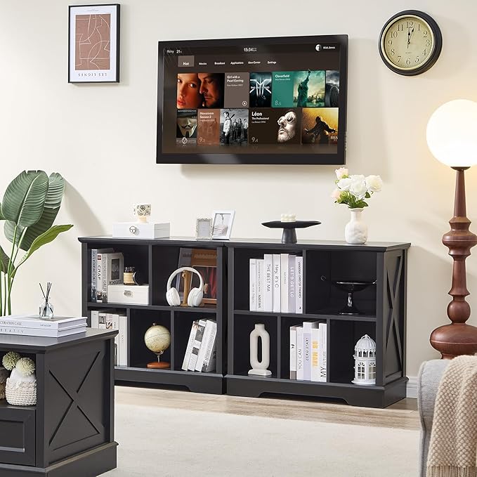 - 5 Cube Storage Space: Our farmhouse-style cube storage bookcase features six spacious compartments, perfect for organizing books, decor, baskets, and more. The rustic X-pattern side panels add a charming touch, seamlessly blending with our existing furniture collection to create a cohesive home decor set. Ideal for living rooms, bedrooms, offices, or closets, this bookcase combines functionality with timeless design
