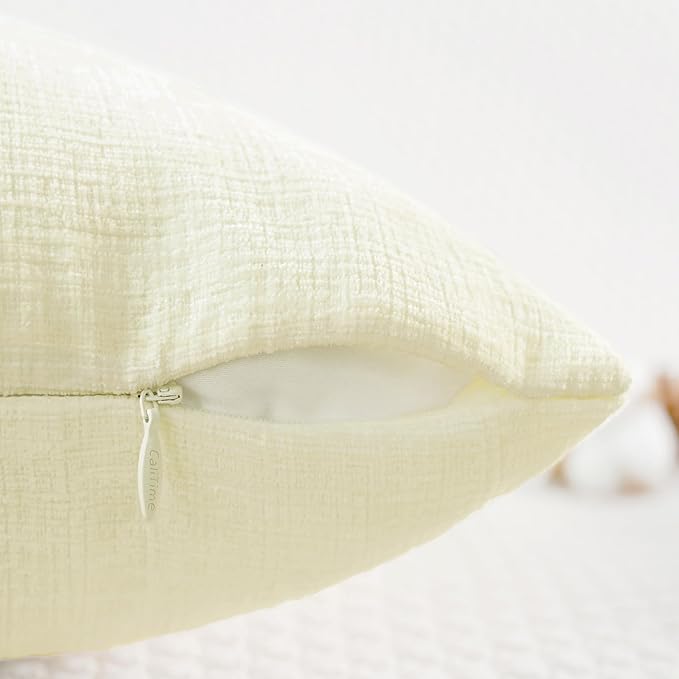 CaliTime Throw Pillow Covers Decorative 24 X 24 Inches Pack of 2 Cozy Chenille Cushion Cases for Couch Sofa Bed Living Room Home Beige