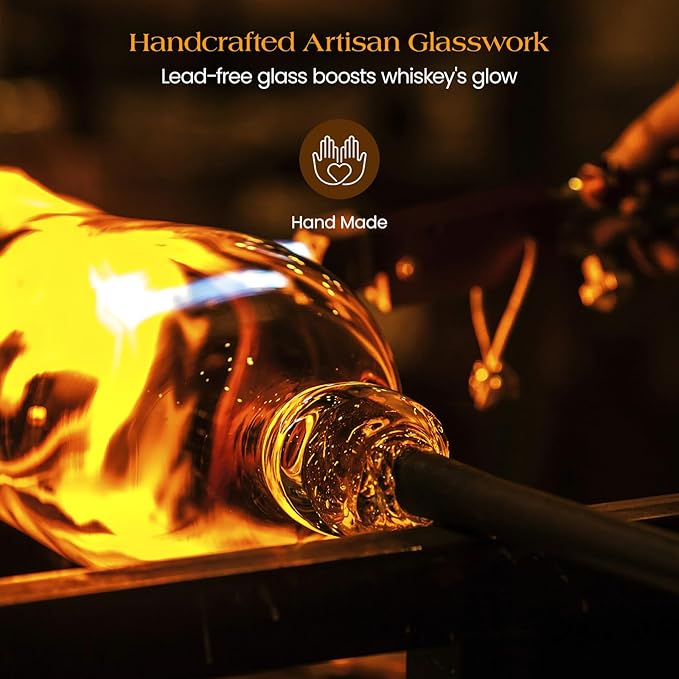 - Premium Artisan Glasswork: The liquor decanter is made of lead-free glass, thick and durable with exceptional clarity, highlighting whiskey’s rich hue. It includes a black wooden stand, adding elegance to home bars, parties, or office décor