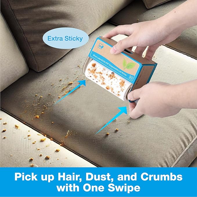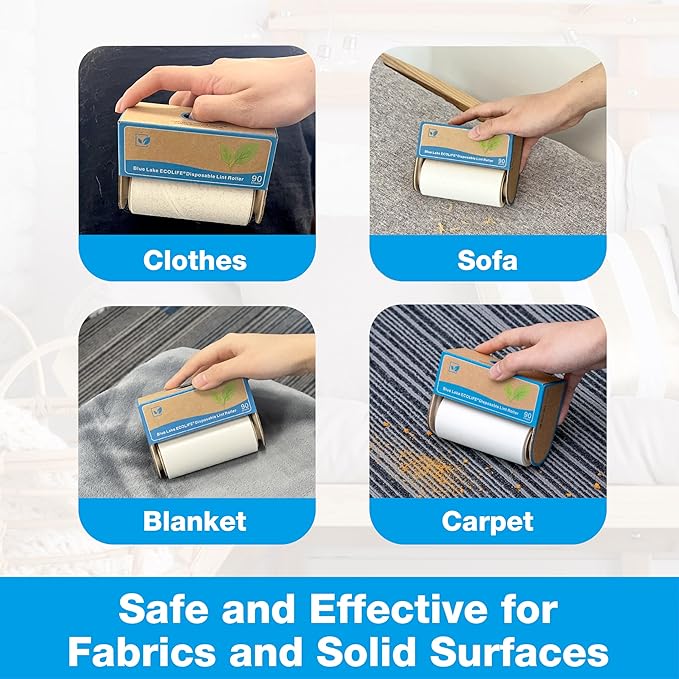 Blue Lake ECOLIFE Plastic-Free Lint Roller ā 4-Pack (360 Sheets) | Extra Sticky & Eco-Lint Remover| Ideal for Clothes, Furniture & Carpet(4 Pack-360 Sheets)