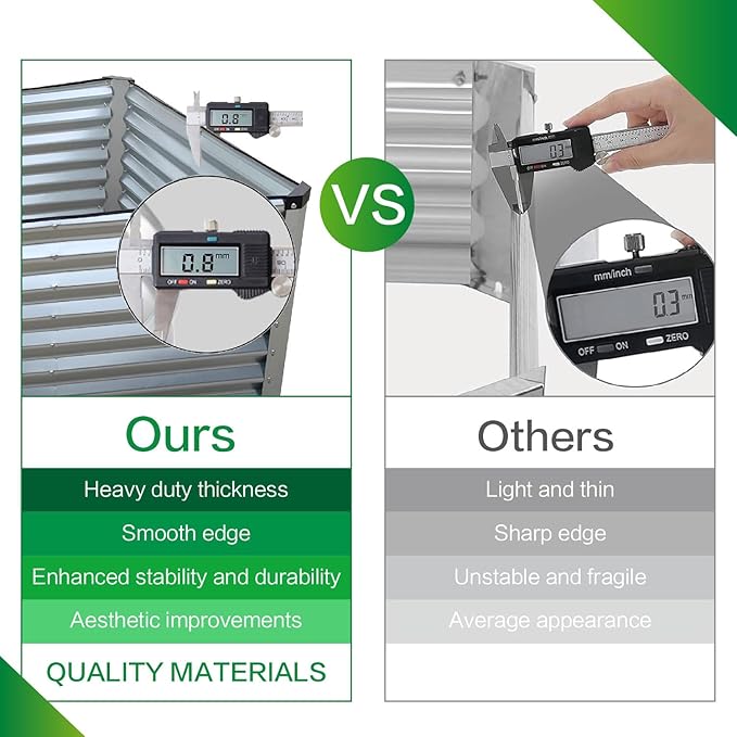- DURABLE GALVANIZED MATERIAL: GARDMAX outdoor raised garden beds are made from 0.8mm heavy-duty galvanized material, ensuring exceptional longevity and durability. It is more resistant to high temperatures and freezes, making it very suitable for outdoor use. And this metal will survive the elements for decades, but when you're ready to replace it, the metal is entirely recyclable