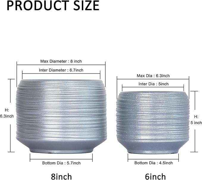 - 【Modern Decorative Planters】:Designed with a raised line-textured finish and modern silhouette, these indoor ceramic plant pots add visual interest to any space—whether styled as 6 inch decorative plant pots or 8 inch flower pots on countertops and shelves.